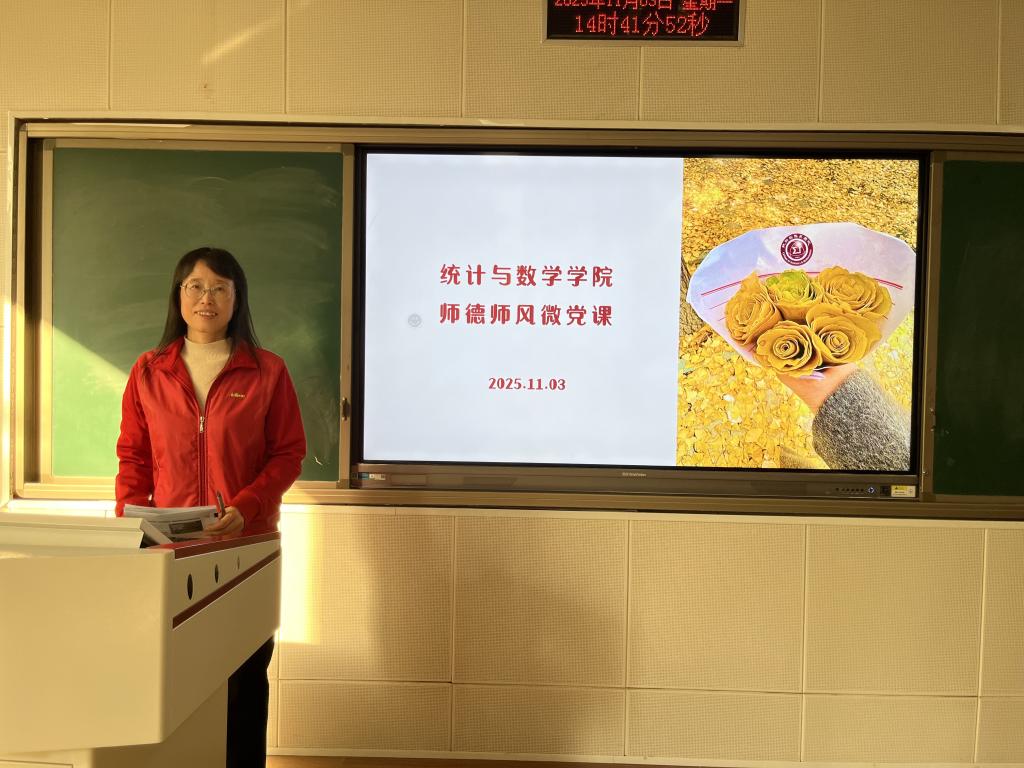 11月3日,统计与数学学院组织全体教工开展“师德师风微党课”活动,党委书记祃海霞担任主讲人。