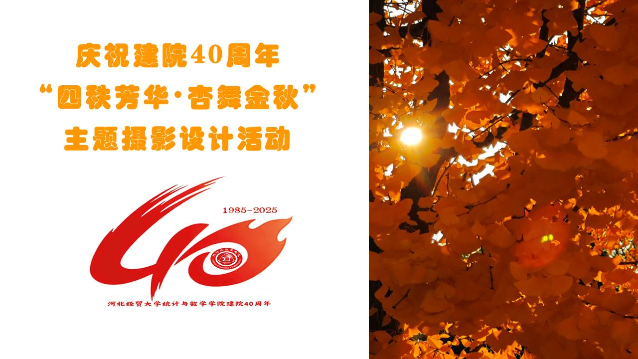 秋风起,银杏黄。统计与数学学院以建院40周年为契机开展了“四秩芳华•杏舞金秋”主题摄影设计工会活动,全体教工以金灿灿的银杏叶为载体,拍摄校园风景照片、设计制作文创作品,以独特的方式庆祝学院建院40周年。
