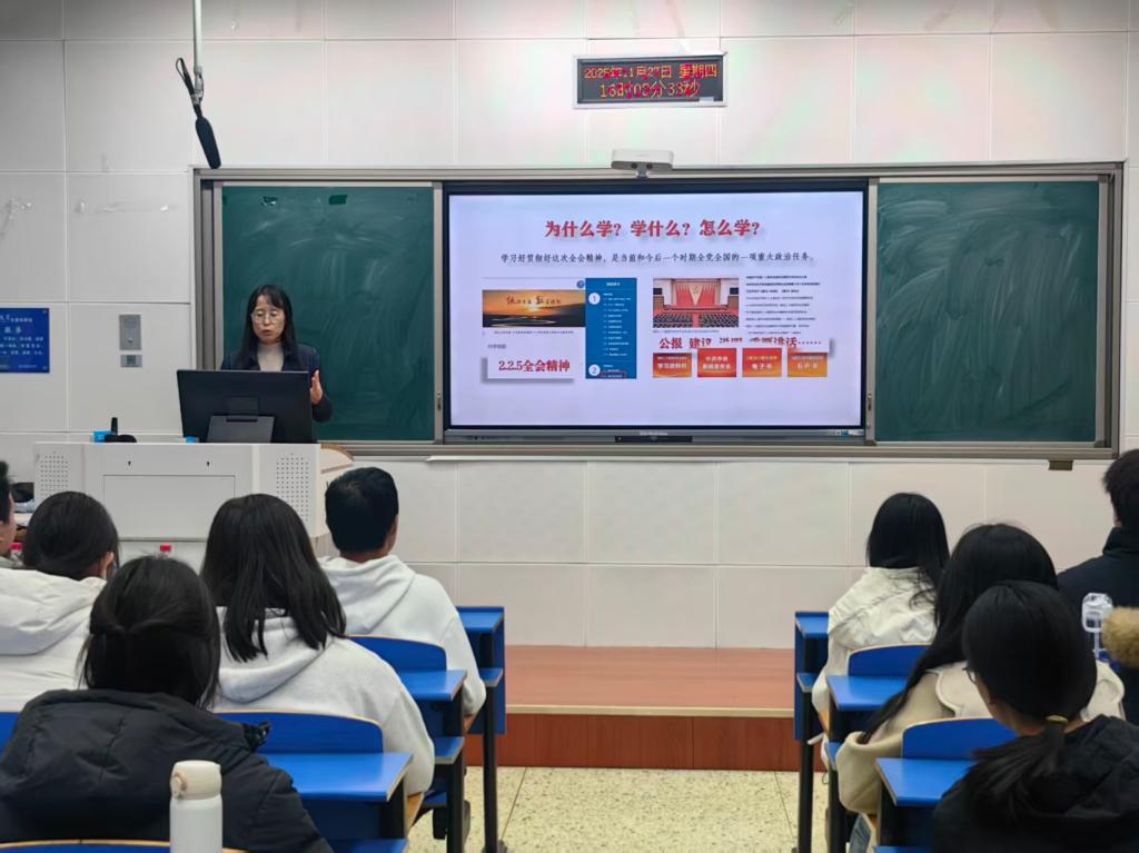 为推动党的二十届四中全会精神在校园落地生根,引导青年学生坚定理想信念、找准成长方向,11月27日下午,统计与数学学院在北三教B103室举办学习党的二十届四中全会精神专题党课。学院党委书记祃海霞担任主讲,各班级学生干部代表参加学习。