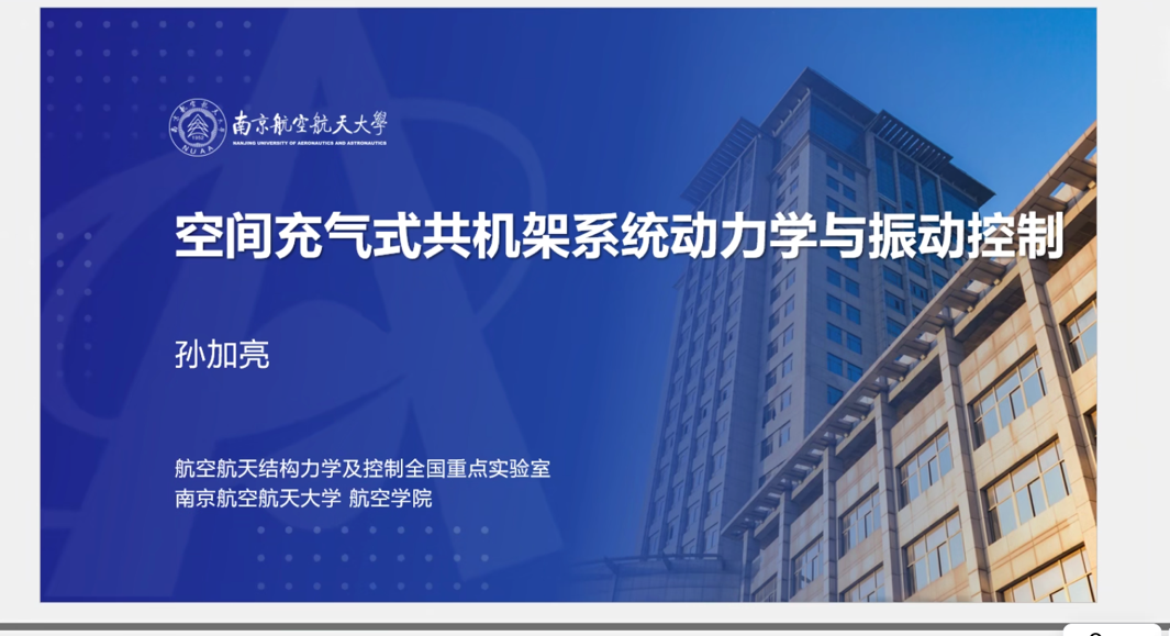 3月26日下午,南京航空航天大学孙加亮老师应统计与数学学院邀请在线上作题为“空间充气式共机架系统动力学与振动控制”的学术报告,相关专业师生参会。