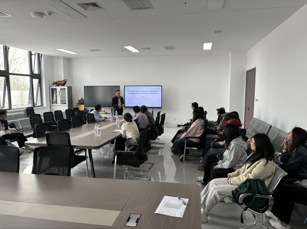 2026年3月27日下午,统计与数学学院邀请青岛大学统计与数据分析研究中心主任李新民教授作题为“FOCuS: Fiducial Optimal Combination using Stacking for Predictive Densities”的学术报告。报告由统计与数学学院院长闫亮主持,学院师生20余人参加。