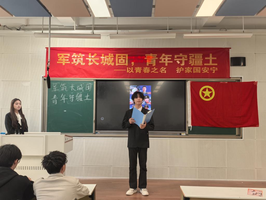 11月3日,统计与数学学院24统计2班在北三教A107开展“军筑长城固,青年守疆土”国防安全教育主题团日活动。