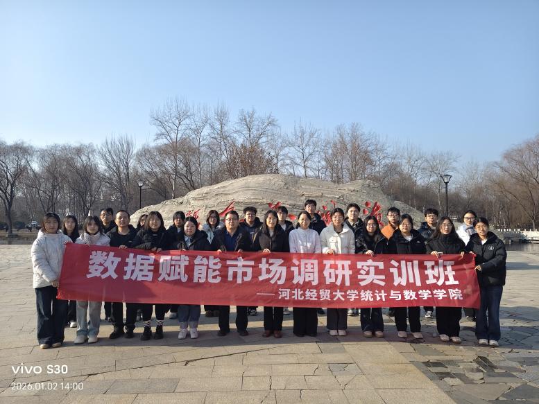 2026年1月2日,河北经贸大学统计与数学学院首期“数据赋能市场调研实训班”正式启动。学院党委书记祃海霞、副书记路荣、副院长张良勇,应用统计学系教师陈华超、魏印朝、许子易、石蕊及实训班20名同学参加启动仪式。