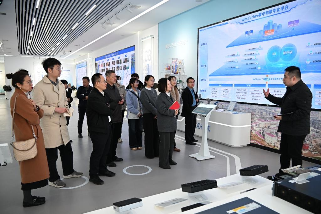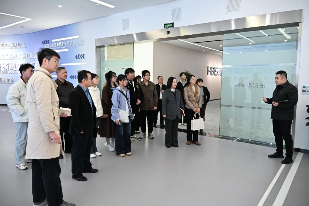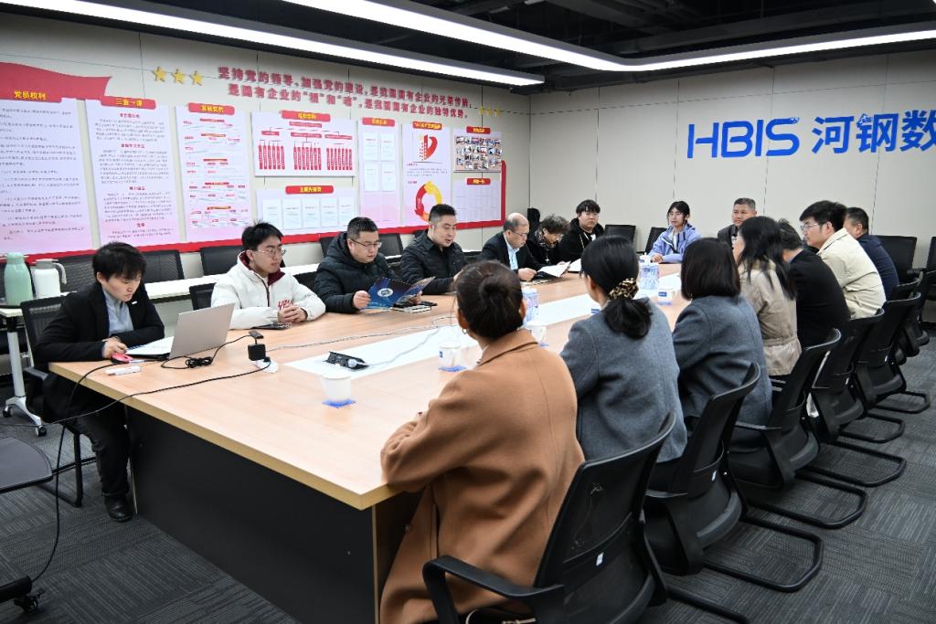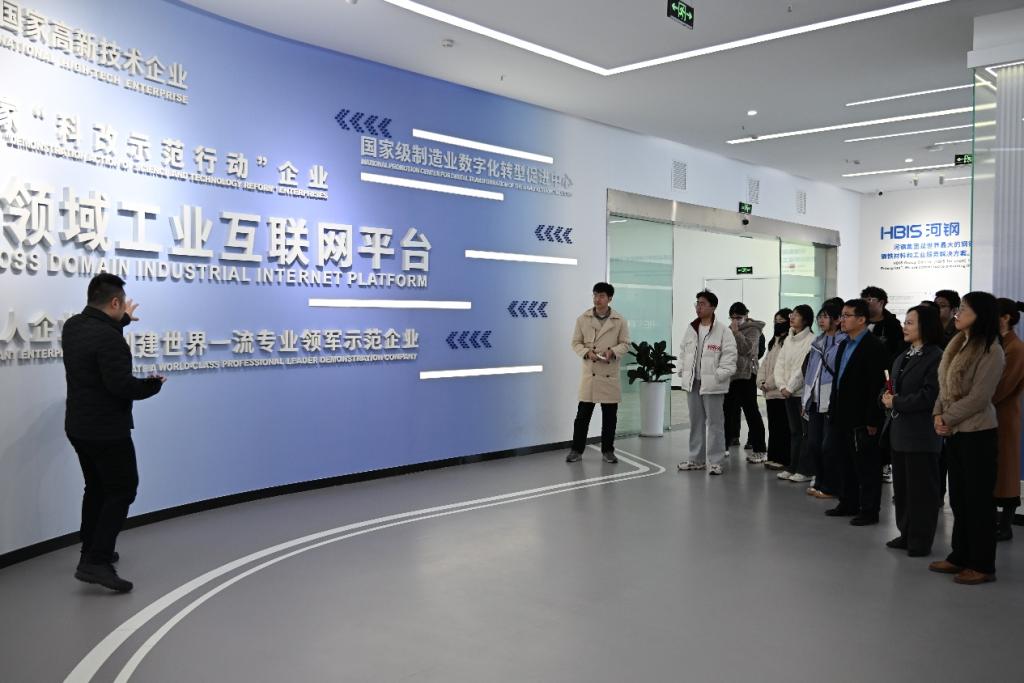 在曾帆、王亚玲等企业负责人的陪同下,学院一行实地参观了企业展厅,重点考察了河钢数字在工业筑基、数字工业、数字低碳、智能装备及人工智能五大板块的最新应用成果。作为河钢集团一级子公司,河钢数字在工业互联网平台建设与大数据实战化应用领域积淀深厚。此次调研使学院更加精准地把握了行业前沿动态,为优化人才培养方案提供了重要参考,同时也为学生在数据建模、风险研判及智能决策等领域的实战能力提升提供了更多机会和平台。
