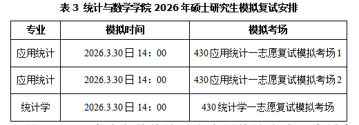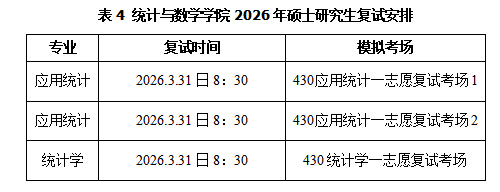 报考我院应用统计和统计学专业的一志愿合格生源(初试成绩达到2026年全国硕士研究生招生考试考生进入复试的初试成绩基本要求(A类考生))按初试成绩总分(加上符合国家加分政策的加分)由高到低排序,确定参加复试的考生名单。我院一志愿考生复试名单见我校研究生院公示复试名单。