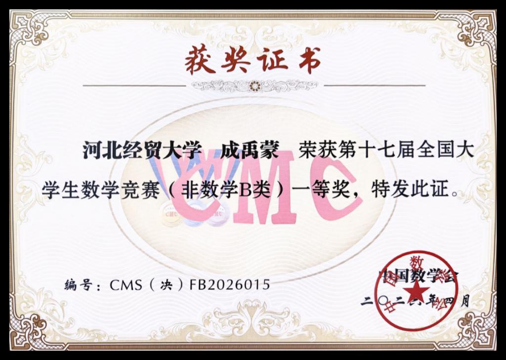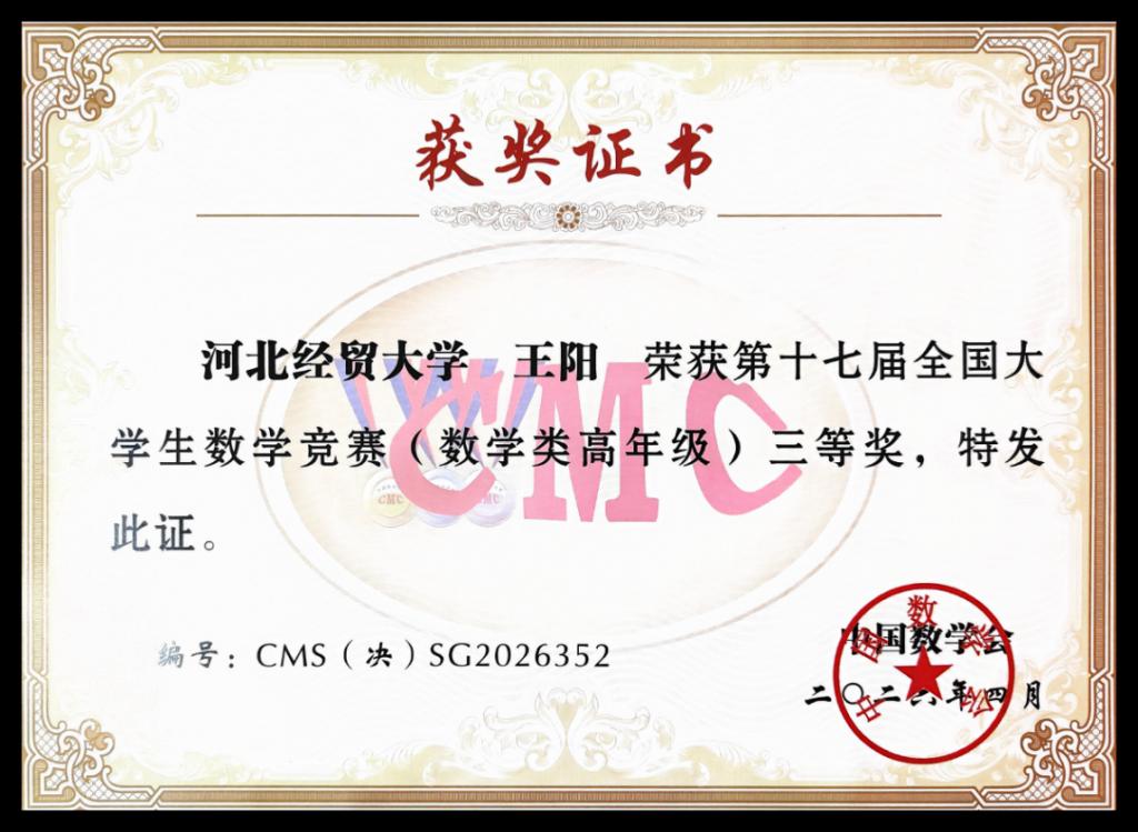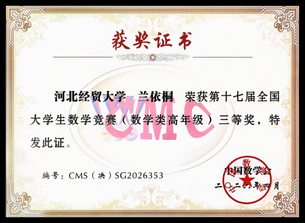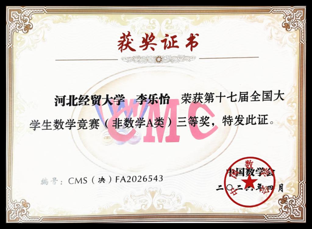 河北经贸大学学子在第十七届全国大学生数学竞赛决赛中斩获佳绩