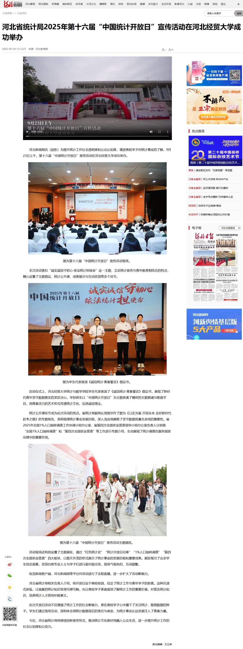 【河北新闻网】河北省统计局2025年第十六届“中国统计开放日”宣传活动在河北经贸大学成功举办